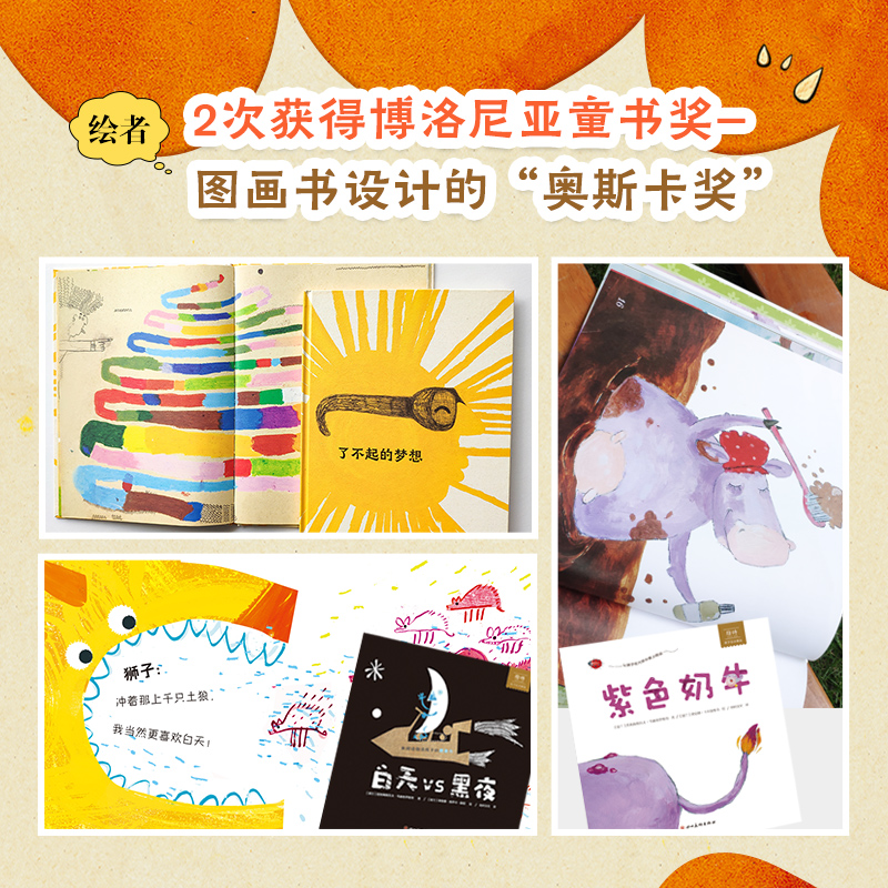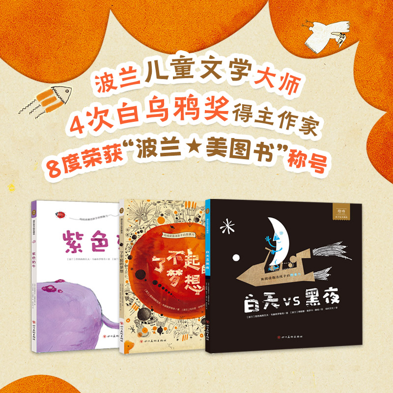 “想象力大爆炸”是以想象力为主题,选取了波兰儿童文学大师普热梅斯瓦夫·韦赫泰罗维奇的三部优秀作品《白天VS黑夜》《紫色奶牛》《了不起的梦想》组成的经典绘本精选辑。专为3~8岁孩子创作,涉及梦想、快乐、生活等积极的主题。每部作品都充满了奇思妙想。这些故事贴近儿童生活,幽默有趣;插画夸张传神,能充分激发孩子的想象力和创造力。