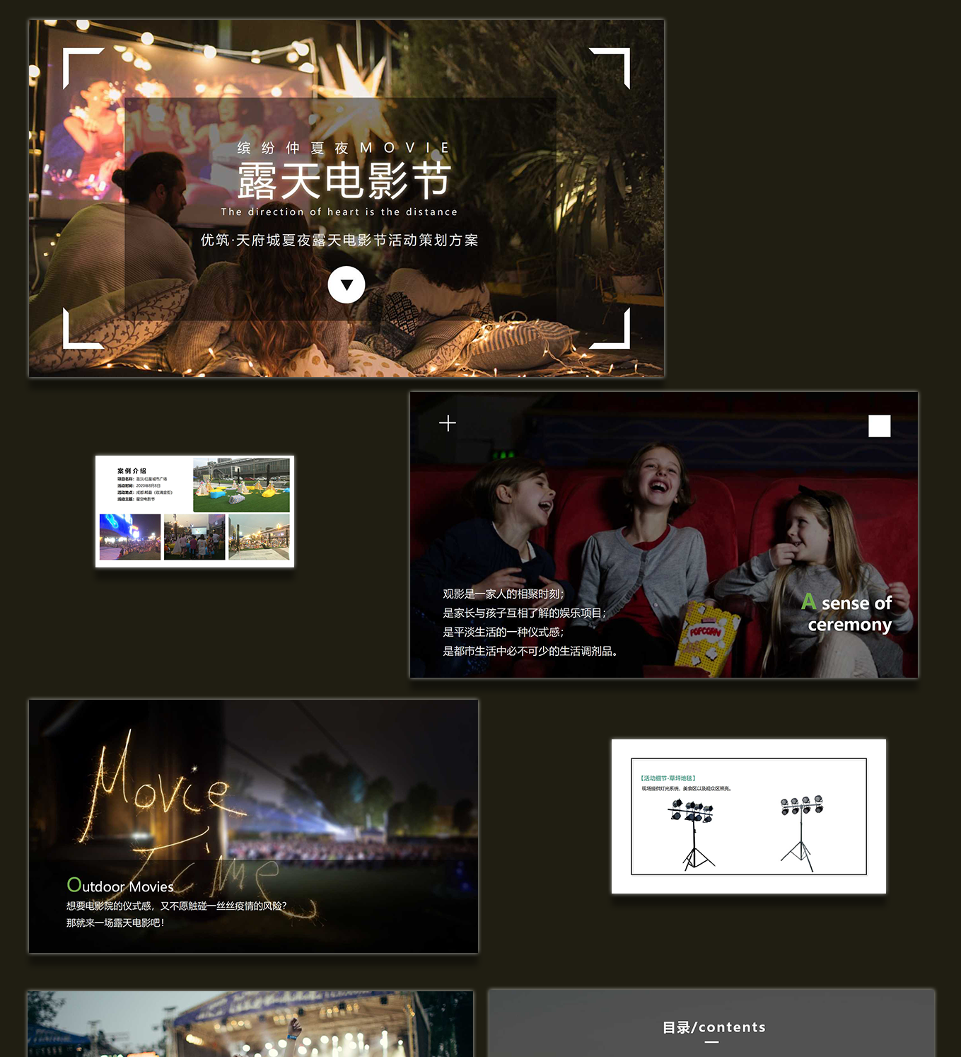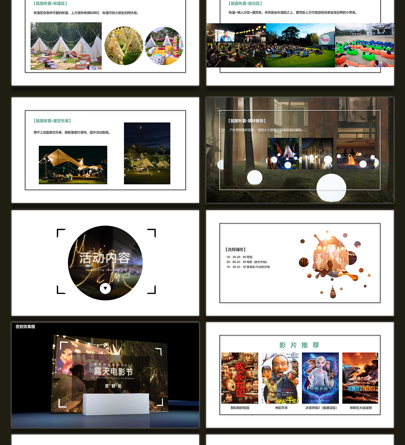 设计元素包括帐篷、星空、电影放映机等,结合户外观影体验,展现活动的特色